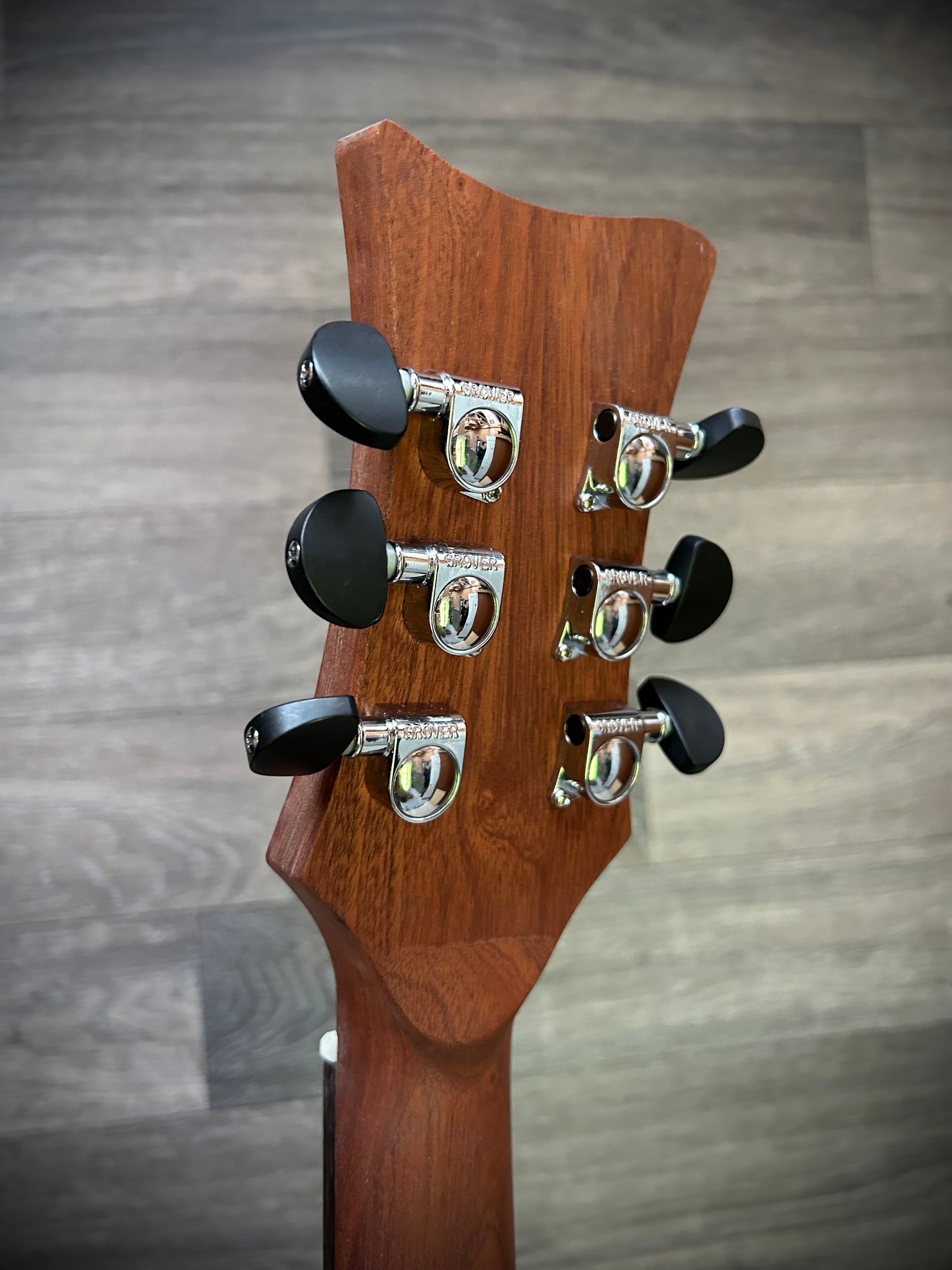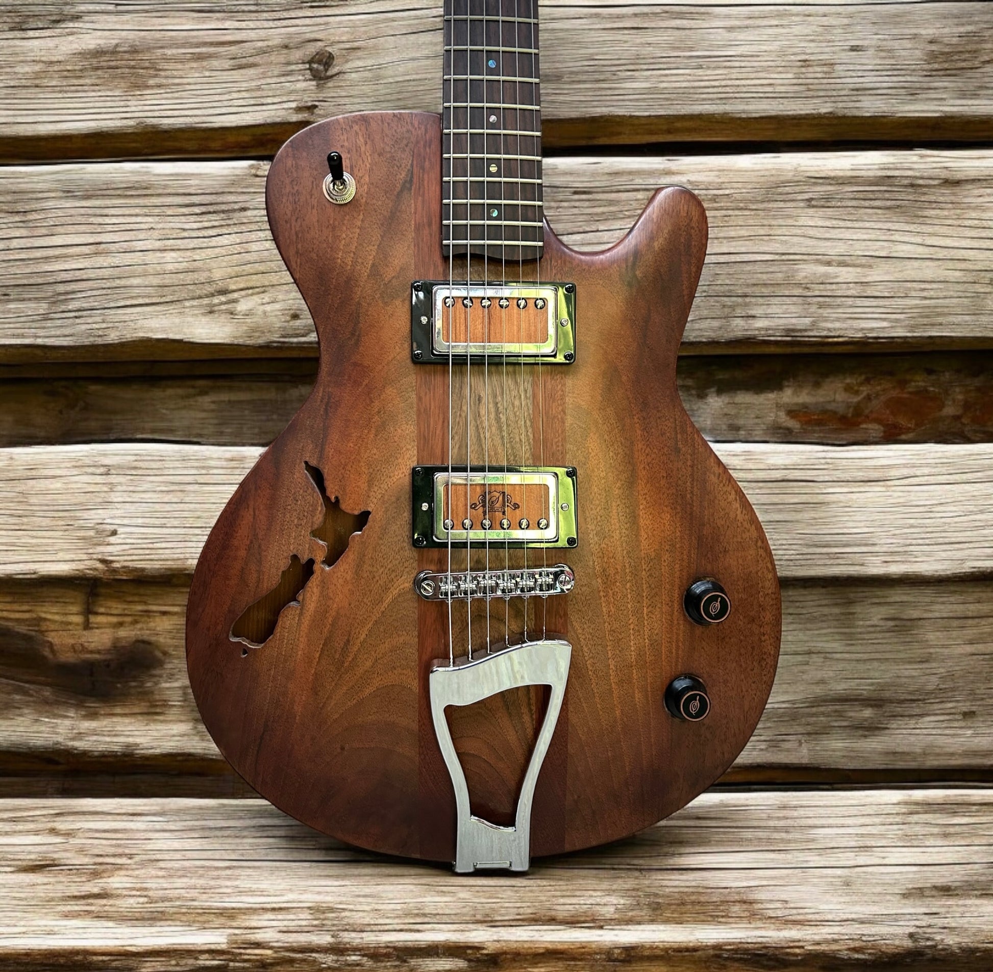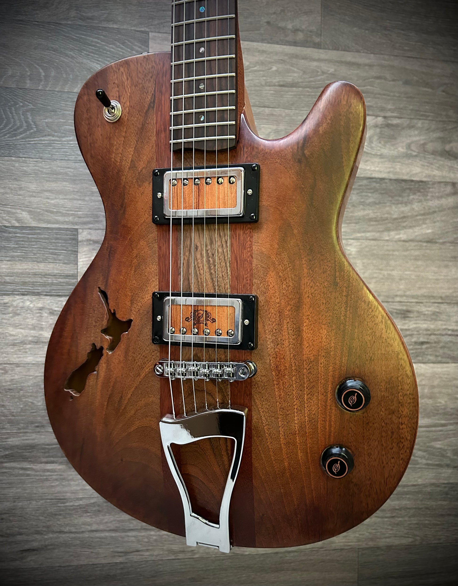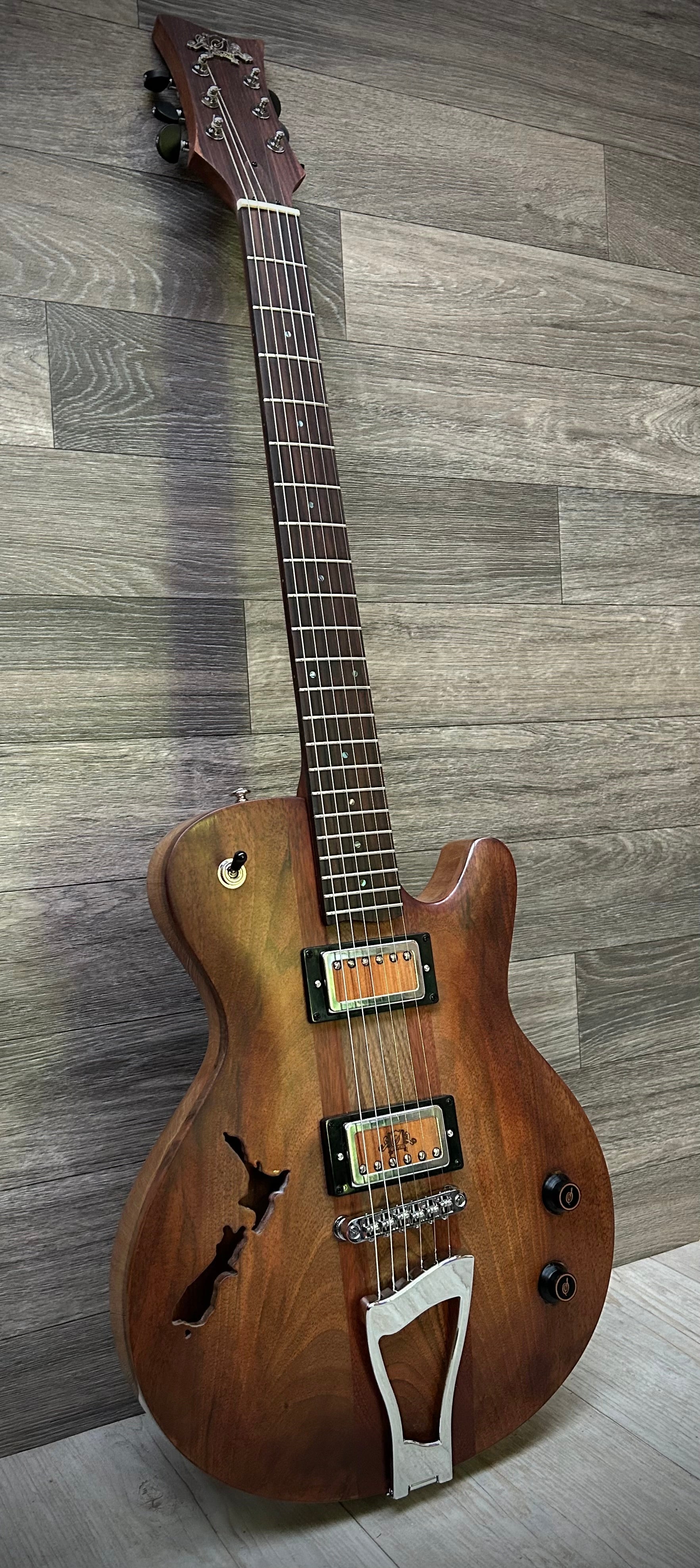 A hand-made, Marlburian with an Aotearoa (NZ) Soundhole. A one-of-a-kind instrument that sports a gloss NZ Rimu back and a satin walnut top.